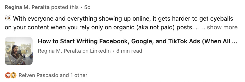 Using text-heavy blurbs to promote articles on Facebook and LinkedIn